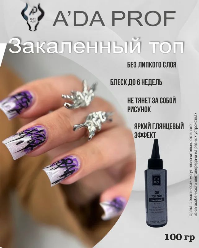 Если вы ищете качественный и надежный топ для гель-лака, который обеспечит долговечность и великолепный блеск, закаленный Top от A'DA PROF — это именно то, что вам нужно.